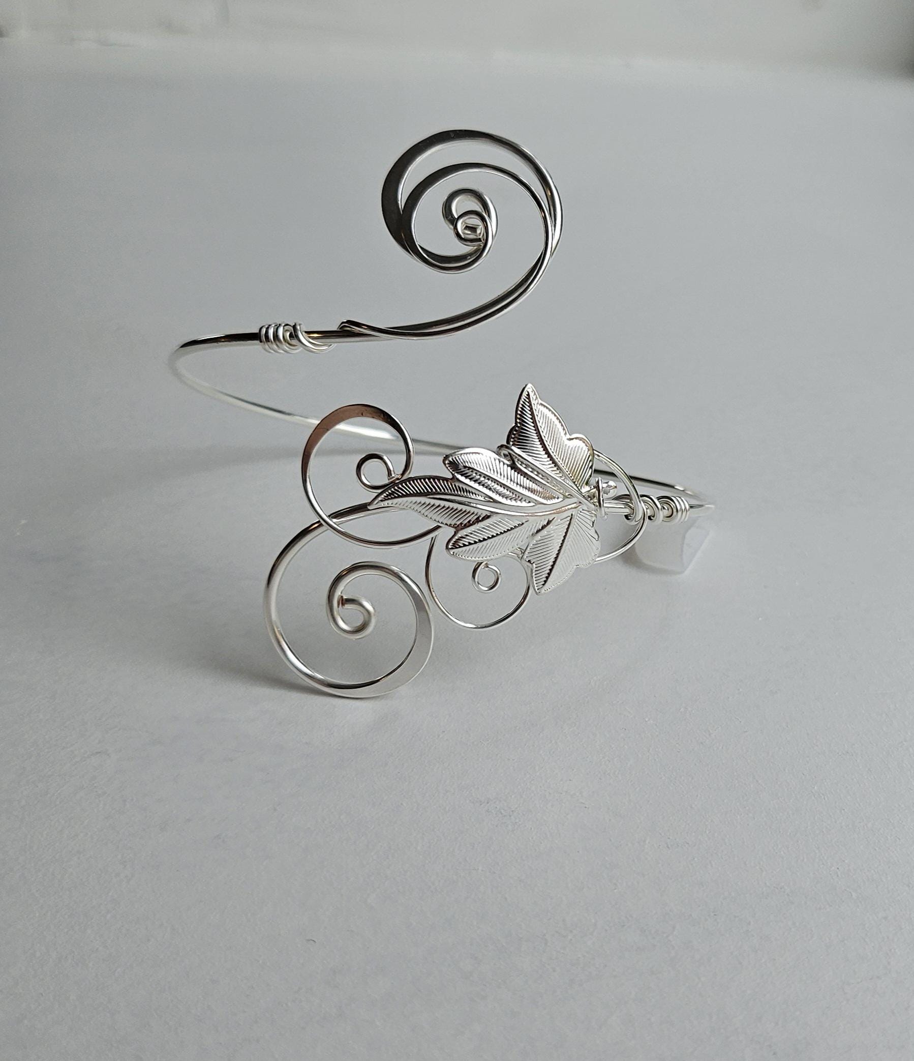 Handmade Sterling Plated Arm Cuff - Ivy Leaf Hammered Jewelry - Adjustable & Custom Fit