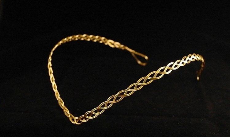 this circlet is a celtic weave that slopes to a v-shape to the front to frame your face