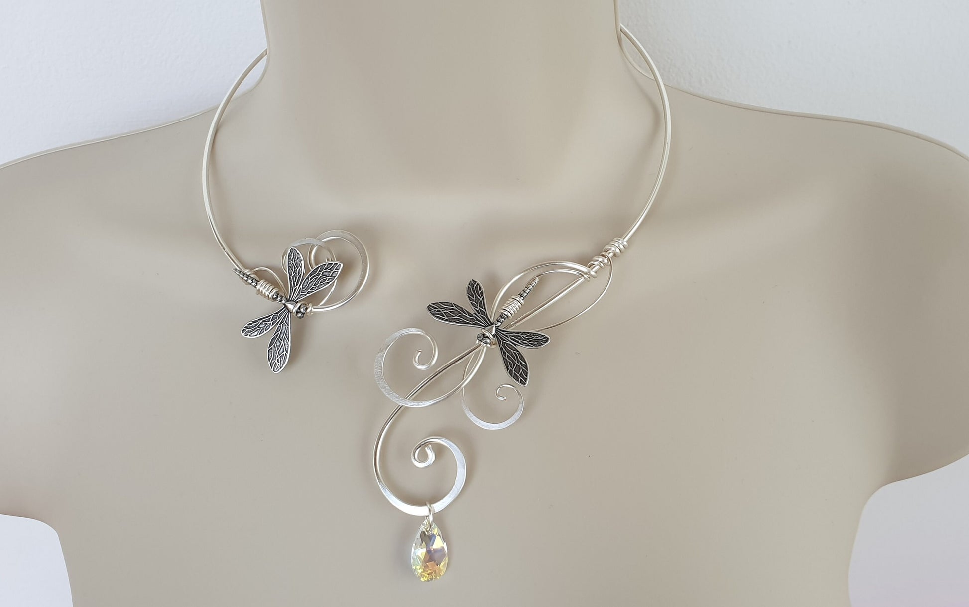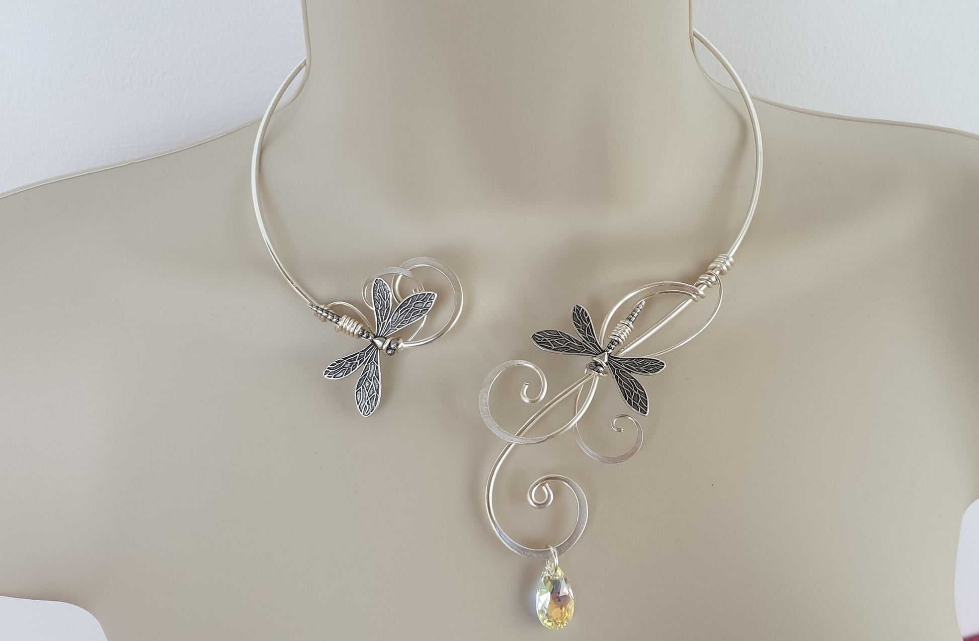 Silver Dragonfly torc collar elven faery necklace fantasy piece