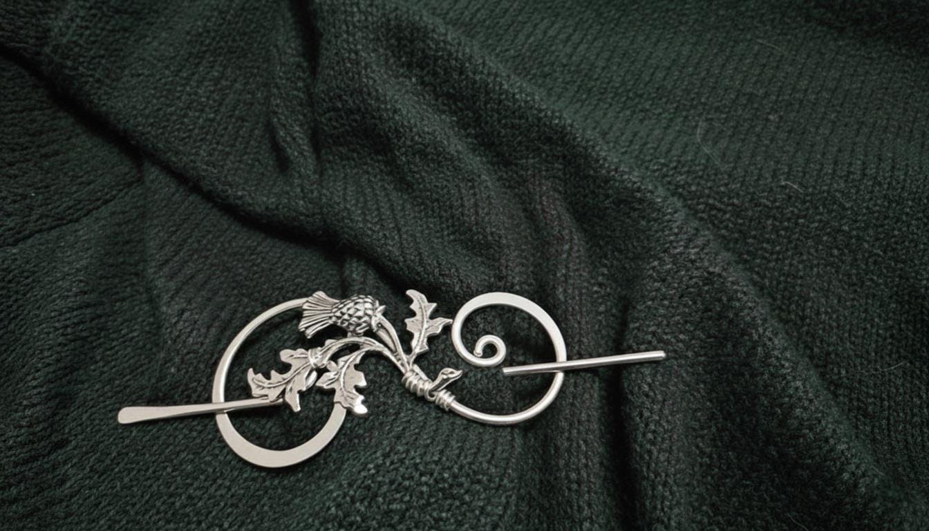 Silver Thistle Pin for Shawl or Scarf, Handmade in Scotland, knit Sweater Fastener,